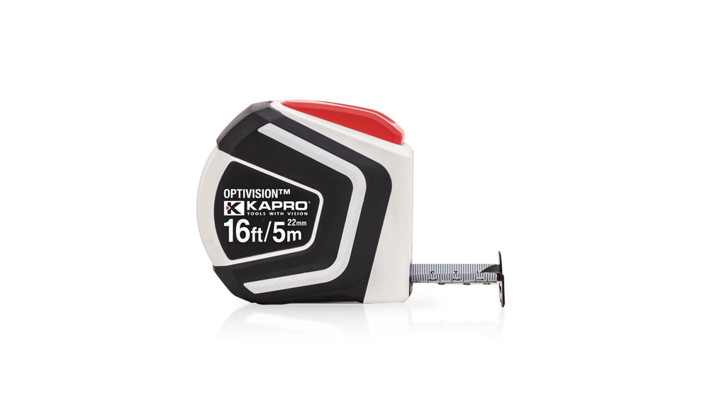 סרט מדידה מגנטי של Kapro OPTIVISION® 510 מעוצב מתוך מחשבה על נוחות המשתמש, ה-Kapro OPTIVISION® 510 כולל עיצוב ארגונומי לטיפול נוח במהלך שימוש ממושך. המבנה עמיד בפני פגיעות מבטיחה שהסרט יכול לעמוד בנפילות בשוגג.